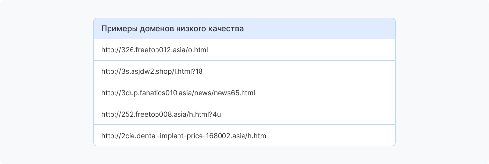 Первичное исследование показало наличие множества ссылок с некачественных и нетематических площадок. Такие сигналы могли негативно влиять на ранжирование, особенно по запросам с названием компании.
