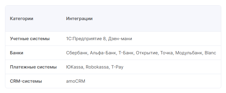 Какие есть интеграции:
