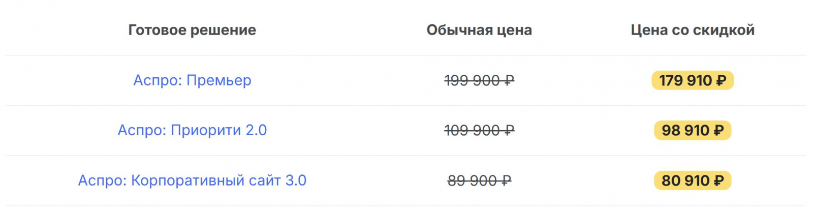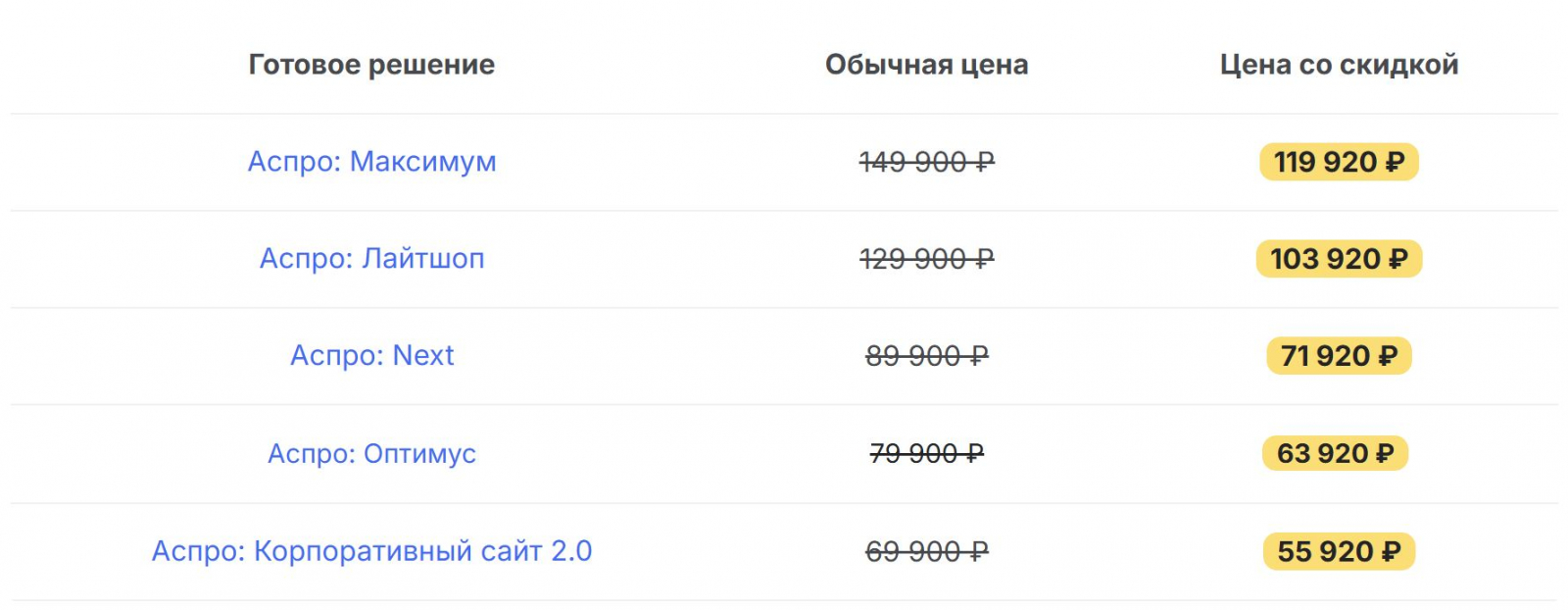 Если вы планируете запуск нового сайта или обновление текущего проекта, сейчас хороший момент для старта. До 29 марта 2026 года действует весенняя акция на готовые решения Аспро. Скидка на продукты составляет до 20%, а максимальная экономия достигает 36 000 ₽.