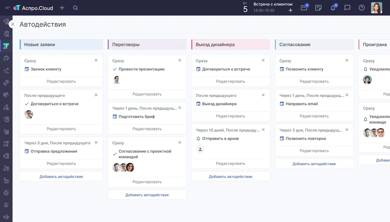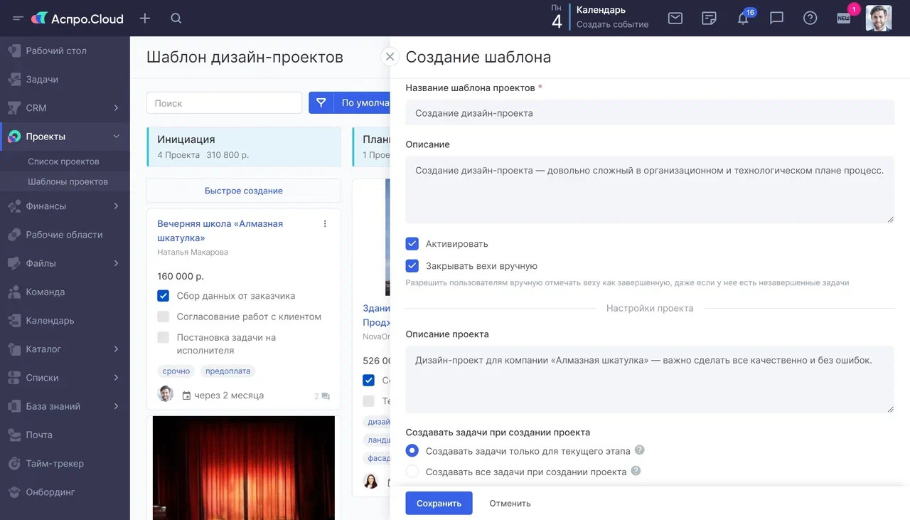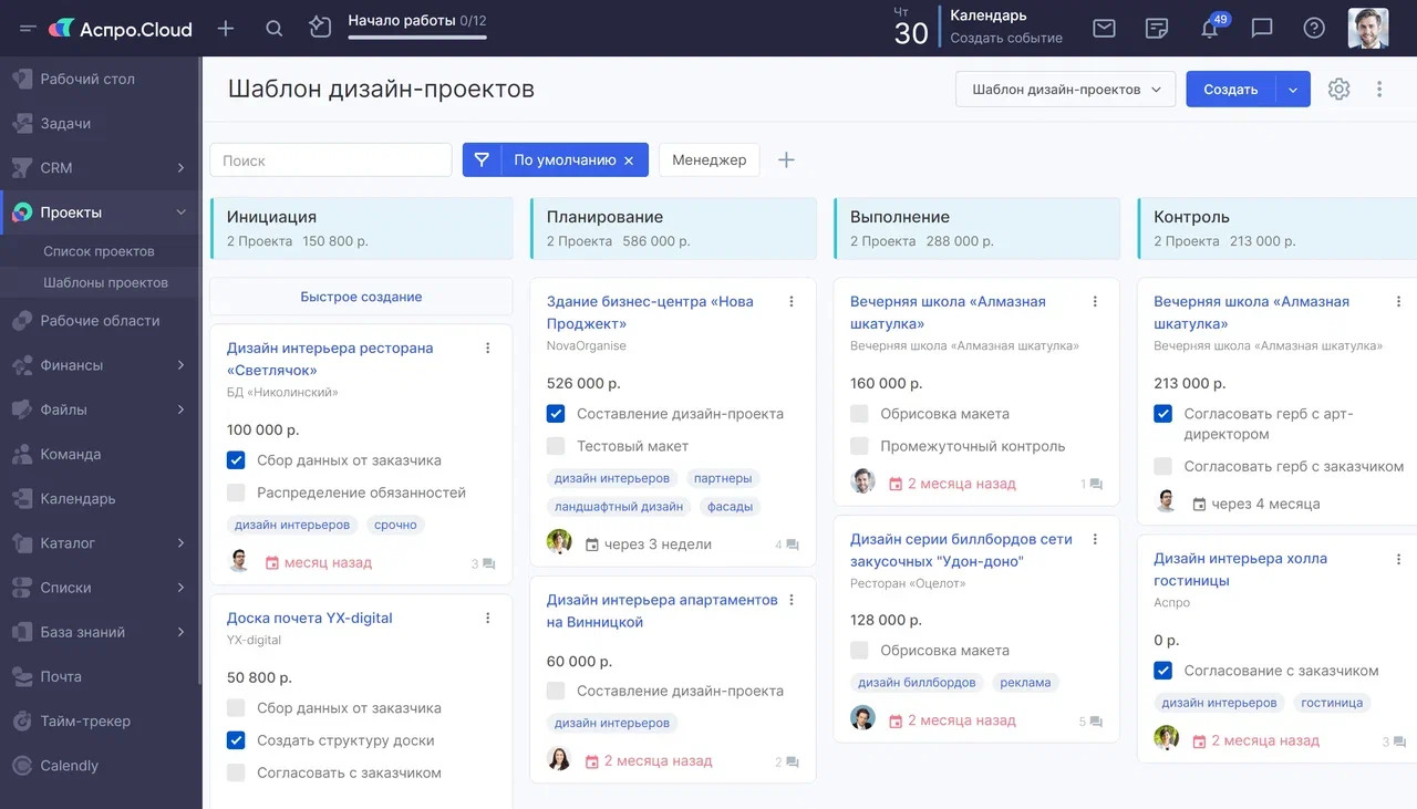 Все задачи, финансы и клиенты — в едином пространстве Аспро.Cloud. Система избавляет от рутины и экономит часы каждый день. Получите 14 дней бесплатного доступа и настройте работу так, как удобно команде.