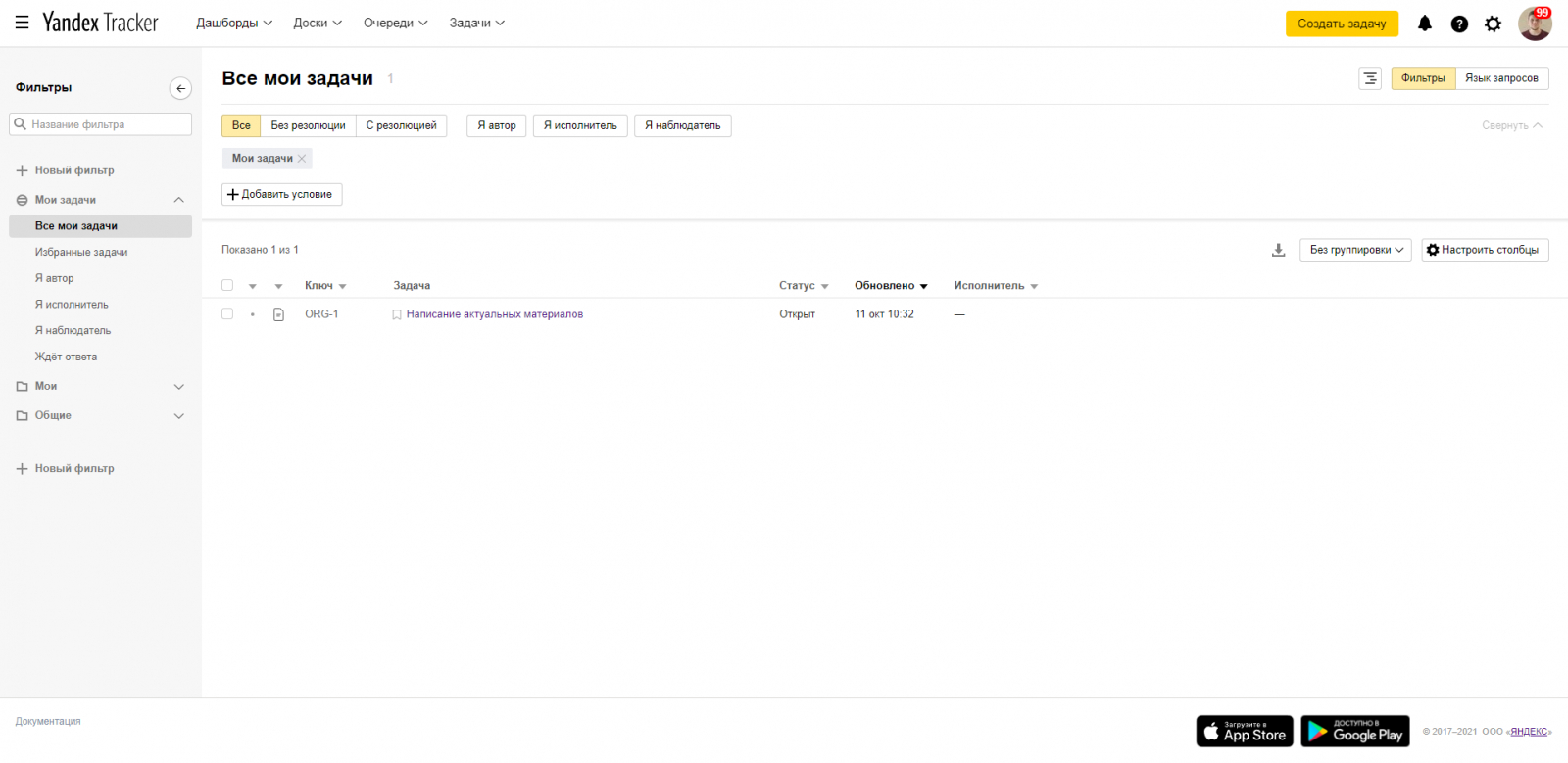 - Структурированные задачи. Каждая задача в Yandex Tracker имеет четкую структуру: заголовок, описание, файлы, ссылки, таблицы и теги. Можно назначить ответственного, задать сроки и оставить комментарии. Это помогает четко контролировать выполнение задач.