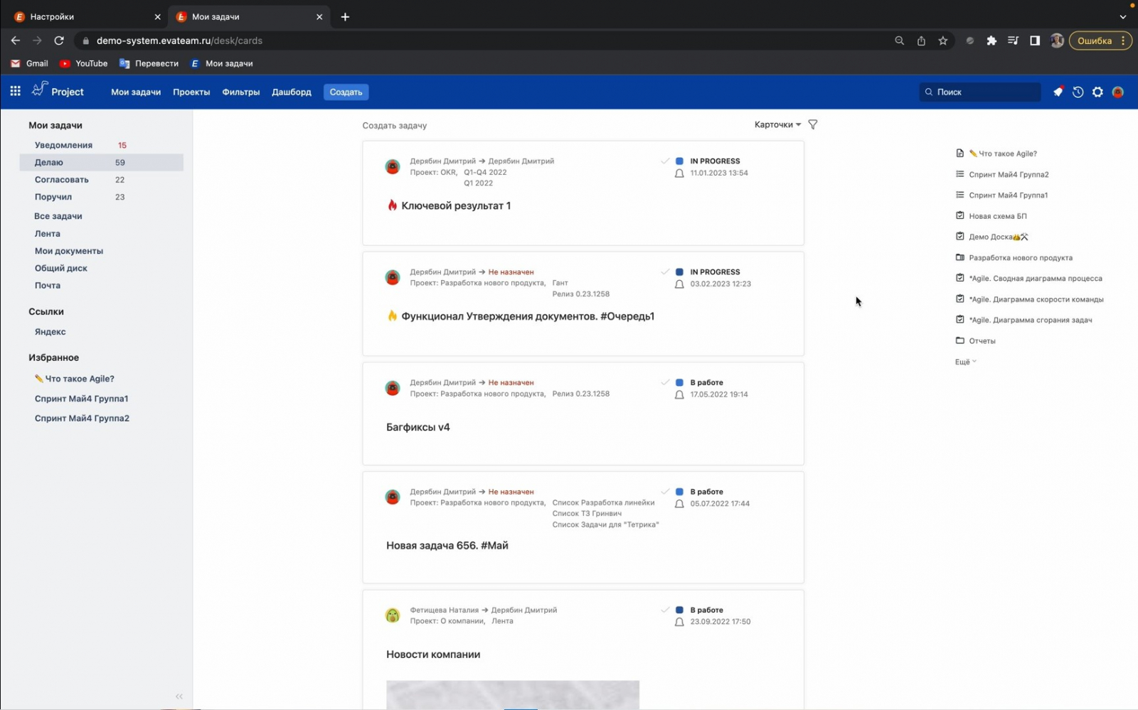 - Бэклог и спринты. Система позволяет создавать бэклог заданий и планировать спринты. Это помогает команде приоритизировать задачи, видеть объем работы и равномерно распределять нагрузку.
