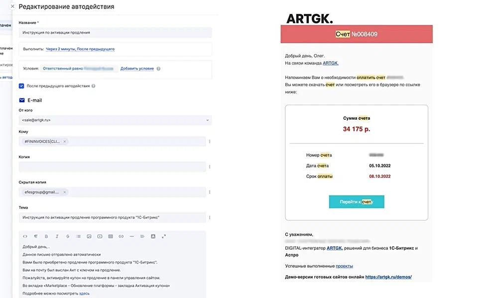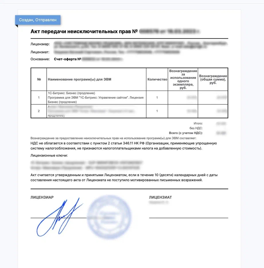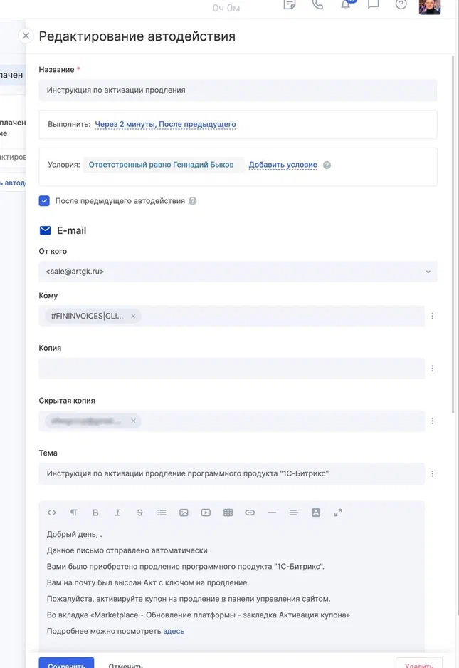 Агентство продает лицензионные продукты 1С-Битрикс и Аспро. Раньше менеджеры отправляли активационные ключи вручную. Теперь процесс полностью автоматизирован: