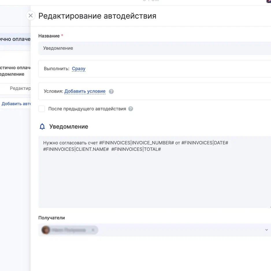 Система самостоятельно отслеживает неоплаченные счета и отправляет напоминания клиентам через 3, 6 и 20 дней после выставления.