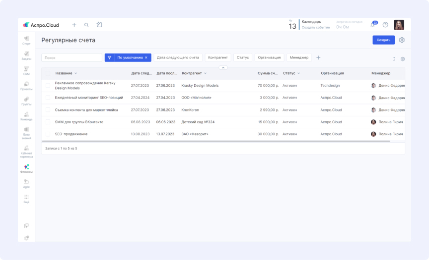 Проблема: Долгосрочное сотрудничество с клиентами требует регулярного выставления счетов. Ручной контроль дат приводил к пропускам платежей.