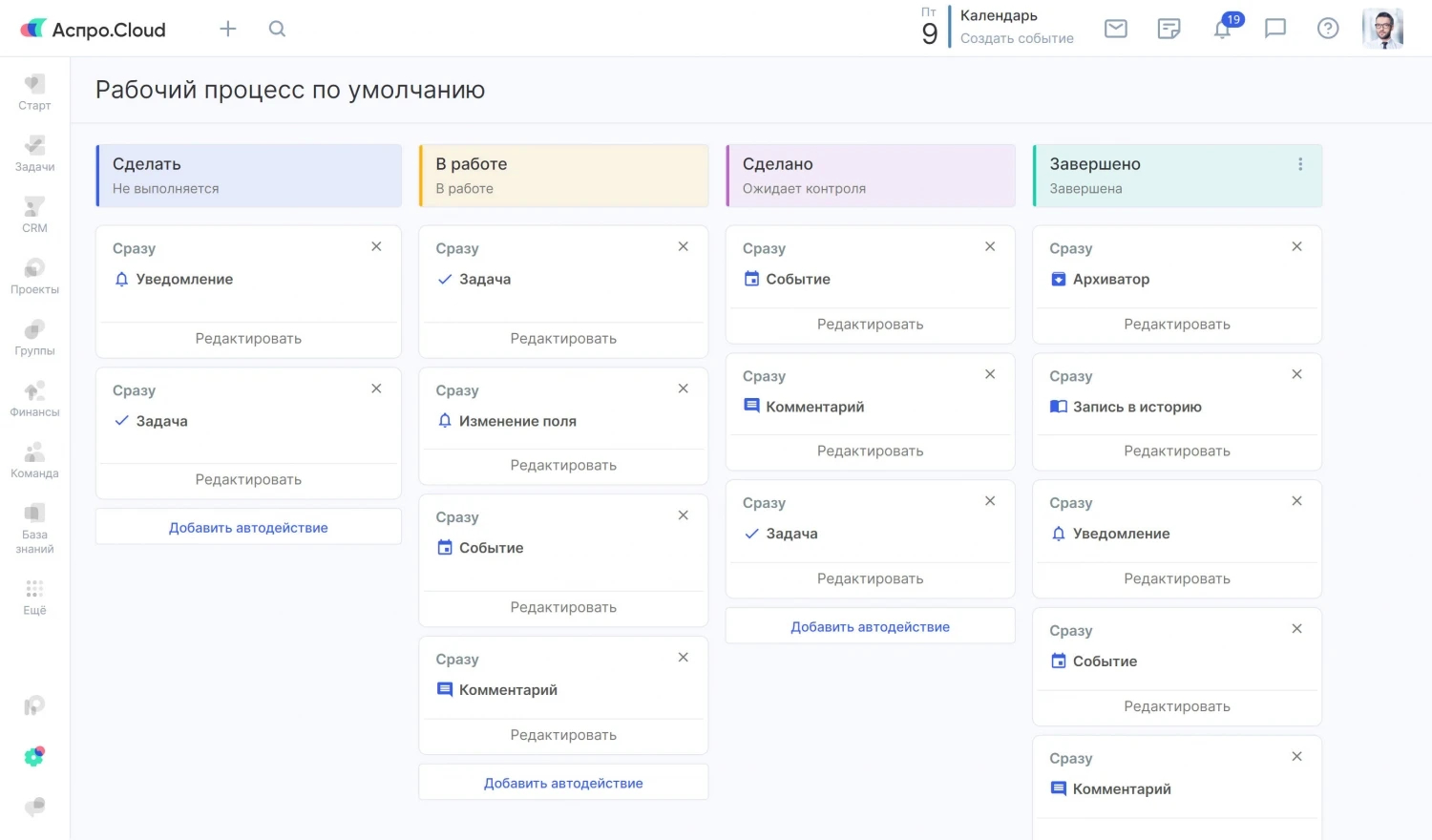 Такой подход обеспечил прозрачность всех проектов и позволил отслеживать движение задач в режиме реального времени. Для сложных проектов команда получила возможность настраивать собственные этапы и сохранять их как шаблоны.