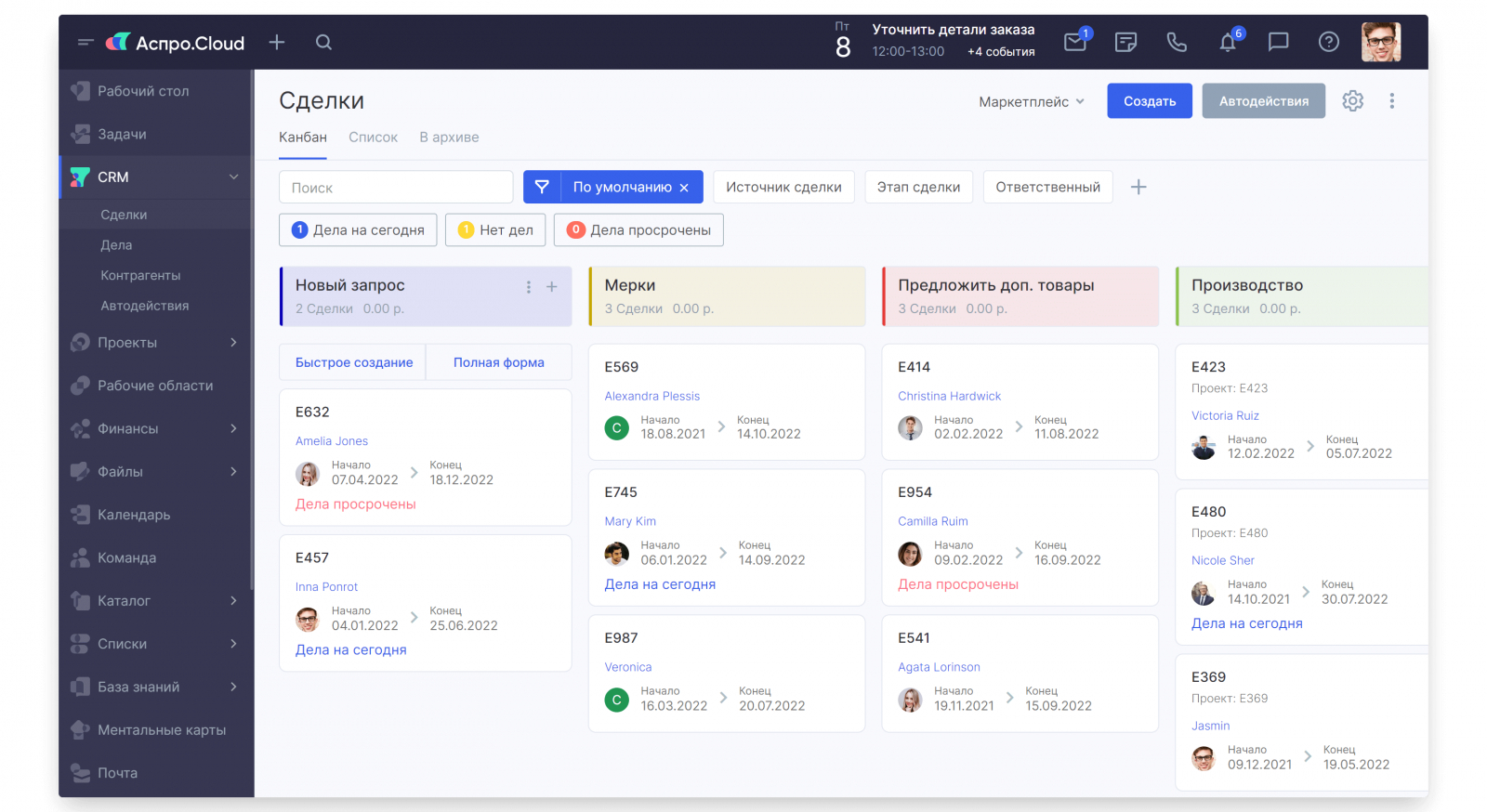 «В Аспро.Cloud мне больше всего нравится тот факт, что когда я захожу в систему, я четко вижу, на какой стадии сколько договоров сейчас находится. Это один из самых важных показателей для меня как для руководителя. В CRM я также отслеживаю, чтобы не было просроченных дел.»