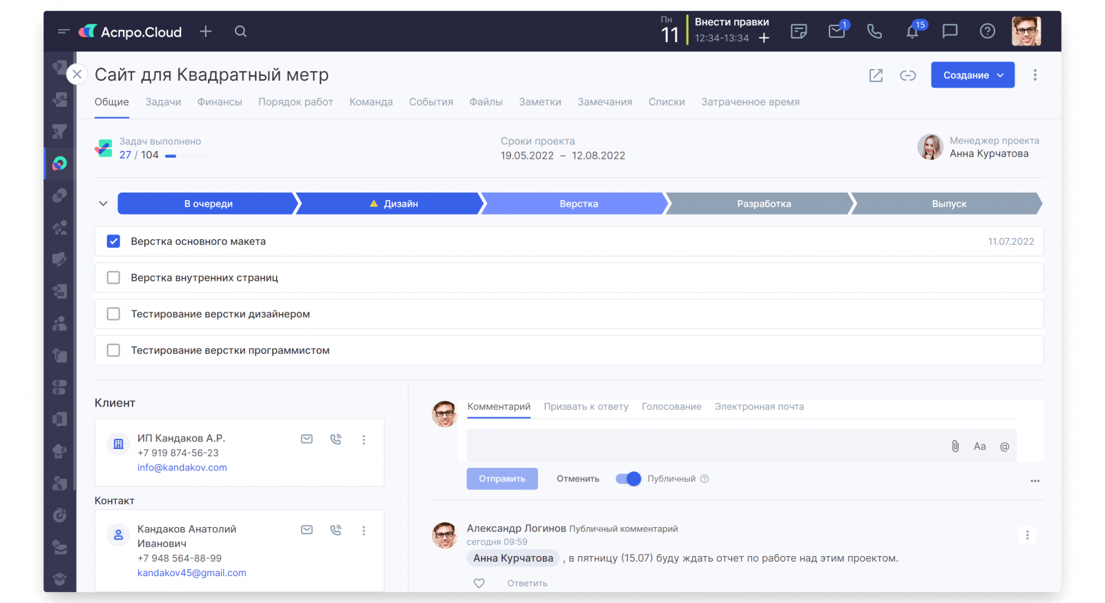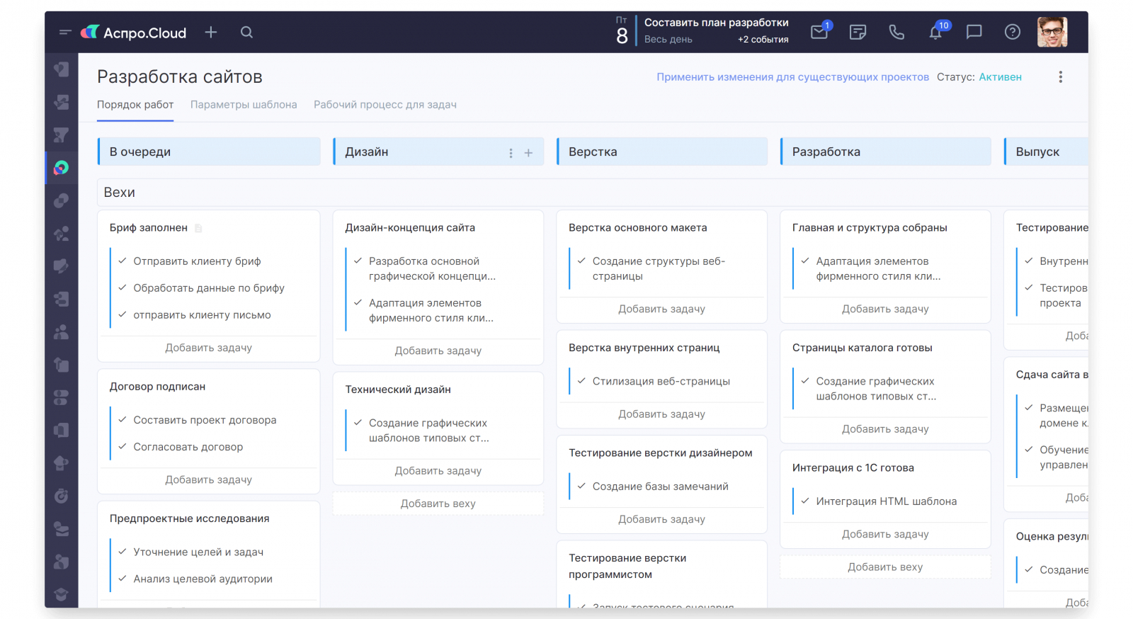 В системах управления проектами, таких как Аспро.Cloud, можно настроить доску под специфику вашего бизнеса и автоматизировать отслеживание прогресса.