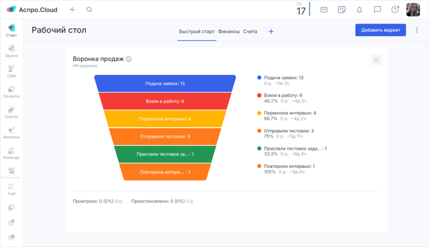 Ранее процесс подбора сотрудников требовал использования множества сервисов, что усложняло контроль каждого этапа. Компания LAVA AGENCY решить эту задачу, внедрив полноценную HR-воронку внутри CRM.