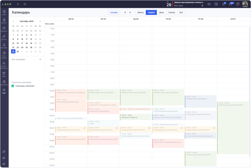 Раньше у агентства была путаница в расписании встреч. Чтобы решить проблему, команда начала использовать общий календарь в Аспро.Cloud. Все события создают с привязкой к проектам и участникам. Так видно, кто участвует, по какому проекту встреча и какие вопросы нужно обсудить.