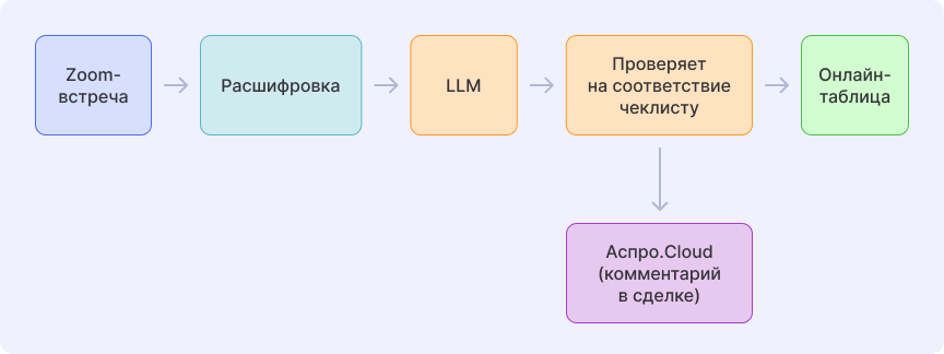Давно рассматривали возможность внедрения ИИ в процессы продаж. Когда стало понятно, что контроль качества — узкое место, мы перешли к проектированию решения.