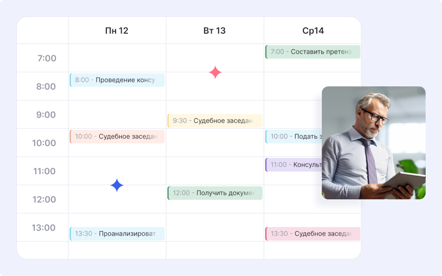 Арбитраж, банкротства, корпоративные конфликты, судебные споры между партнерами, правовые консультации для бизнеса — работа юридической компании всегда связана с жесткими сроками. Любая ошибка в планировании может стоить слишком дорого. Достаточно пропустить заседание или встречу с судьей — и это уже влияет на исход дела.