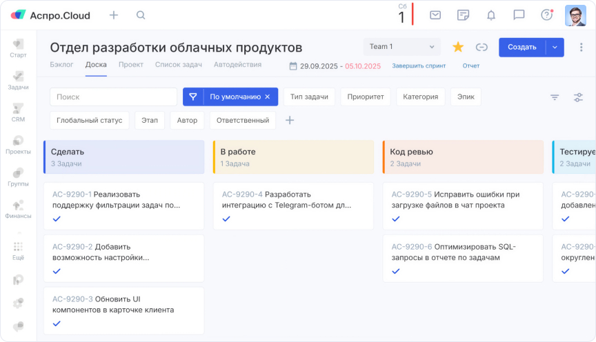 Первое, что создавало хаос, — отсутствие общего цикла работы. У одних команд спринт начинался в понедельник, у других — в среду. Где-то он длился неделю, где-то две, а иногда растягивался почти на месяц. Дедлайны сдвигались, задачи переносились, релизы не фиксировались как отдельный результат.