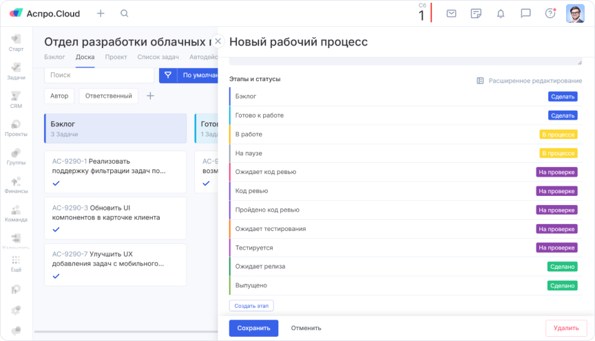 Разделение позволило видеть, где именно задача застряла. Появилась возможность анализировать узкие места: например, если карточки долго стоят на этапе ожидания тестирования, это сигнал к перераспределению ресурсов.