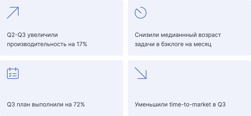 Отдельно запустили кросскомандное демо. На него приглашаем маркетинг, поддержку, руководителей и собственников. Каждая команда показывает результат за две недели. Это усилило прозрачность и сняло постоянные вопросы о сроках.