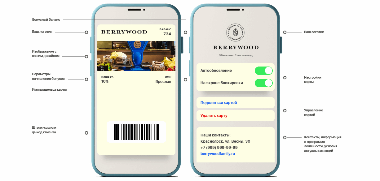Электронные карты Wallet - удобный способ хранить карты лояльности прямо в смартфоне. Гость не теряет карту, не забывает ее дома и чаще использует бонусы.