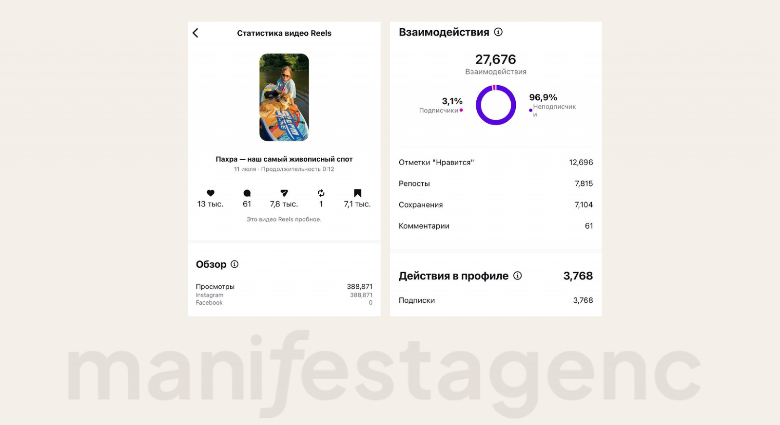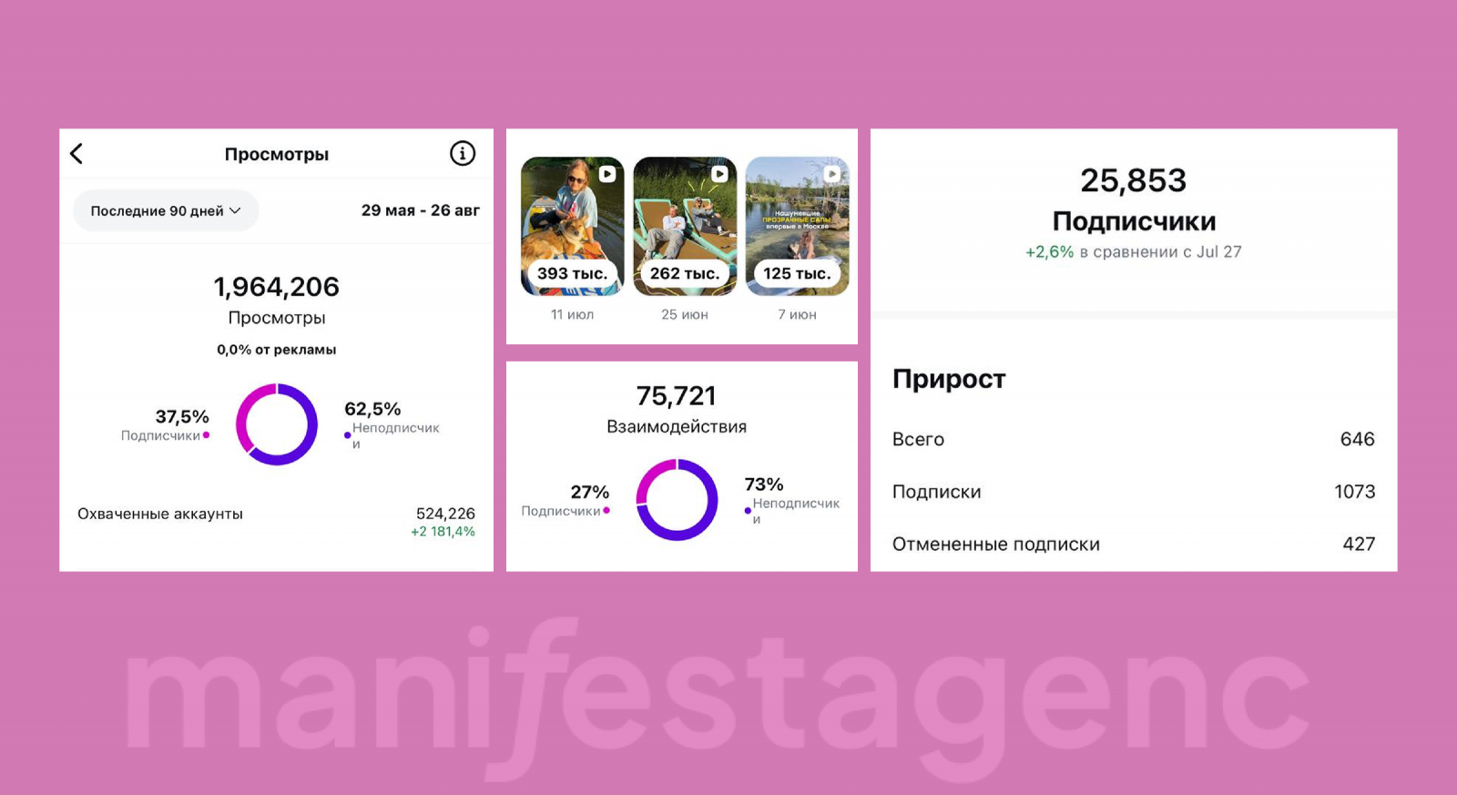 Секрет успеха: запускали оба формата одновременно, тестировали и смотрели, что «залетает». Эмоциональные ролики дают вовлеченность, трендовые — охваты.