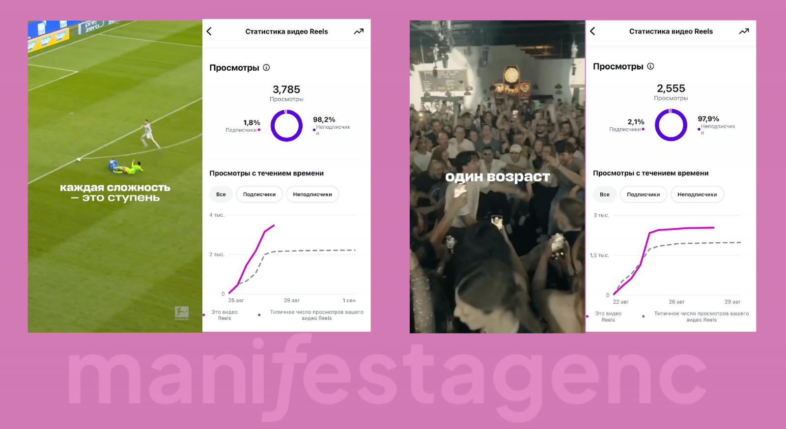 Привет! Мы маркетинговое агентство MANIFEST. Уже больше 3 лет помогаем брендам расти в соцсетях и каждый месяц получаем >10 млн охвата.