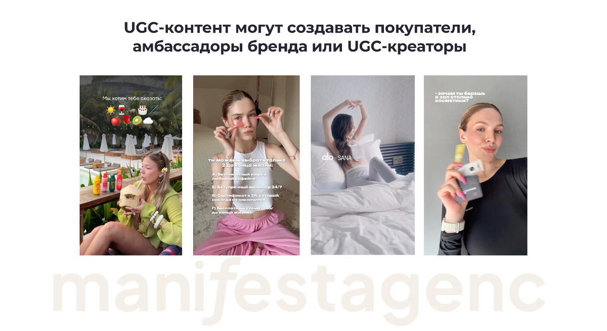 UGC (User Generated Content) — это пользовательский контент, который создают не бренды, а сами потребители. Простыми словами словах, это любой контент, который ваши покупатели публикуют в интернете, будь то фотографии, видео или отзывы о вашем продукте. Это может быть пост в Instagram, видео на YouTube или отзыв в Facebook.