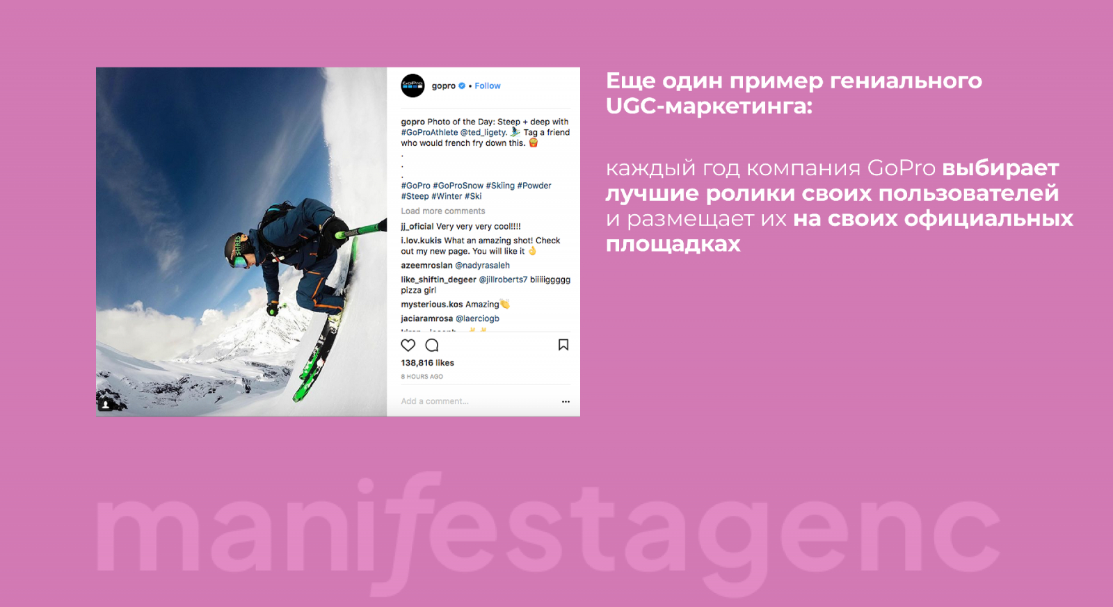 Когда люди выкладывают фотографии с вашим продуктом, это реально помогает повысить доверие к вашему бренду. Каждый такой снимок становится мини-рекламой, которая выглядит гораздо более органичной и натуральной (читать статью «Как продвигать товарный бизнес через рилс и UGC-контент: кейс маркетингового агентства MANIFEST»)