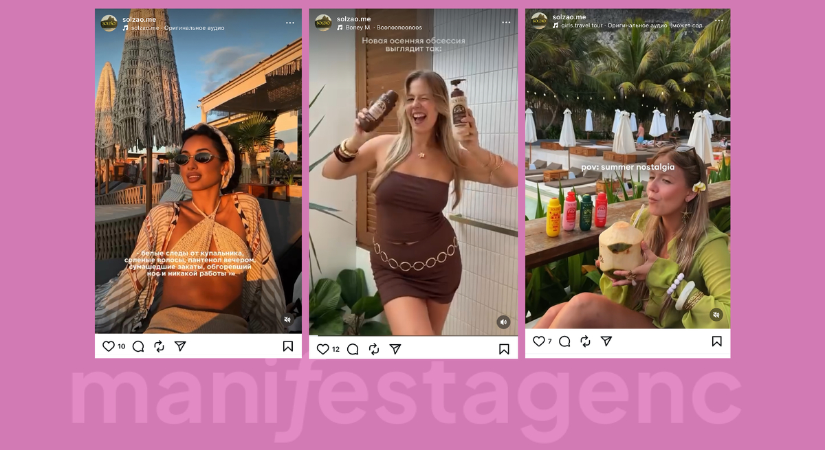 Но не только крупные бренды могут сделать ставку на UGC. Мы работаем с быстро развивающимся брендом гелей для душа — SOLZAO. В их арсенале несколько креаторов с разной внешностью и харизмой, которые снимают живой и искренний контент. Бренд регулярно вирусится в TikTok благодаря своим ярким ароматам, и тем самым получает органический контент от пользователей, который активно распространяется в социальных сетях. Это классный пример того, как UGCпомогает бренду не только сэкономить на продакшене, но и усилить доверие к продукту.