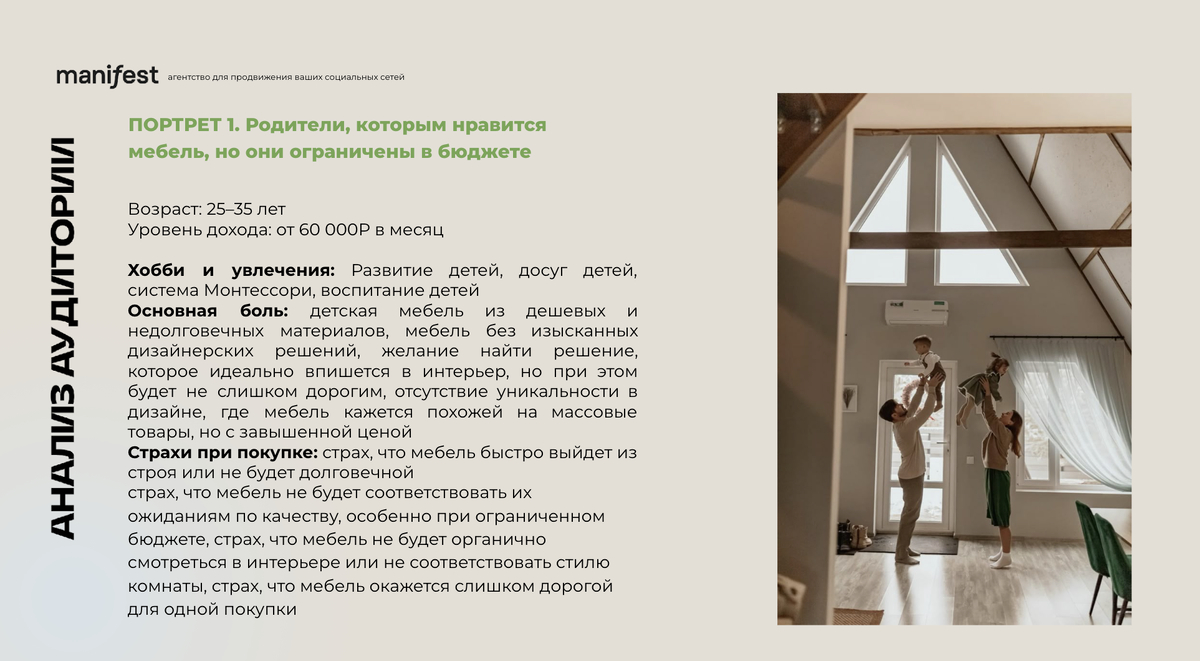 Прежде чем что-то менять или создавать контент, важно было понять, кто же наш покупатель и что его интересует. Мы провели бренд-распаковку, изучили рынок и определили, что ключевыми являются: