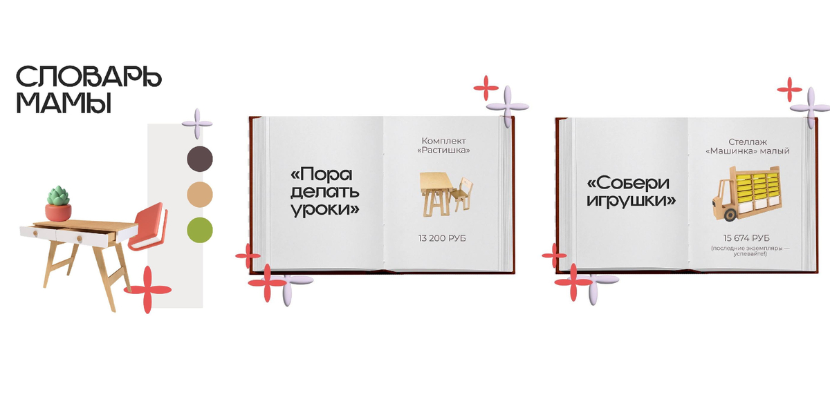 3. Словарь мамыЭффект говорящей мебели в виде известных фраз, которые родители часто говорят своим детям, например, «Собери игрушки» или «Пора делать уроки». Этот пост мгновенно вызывает отклик у мам, так как мебель становится не просто предметом, а «союзником» в воспитании.