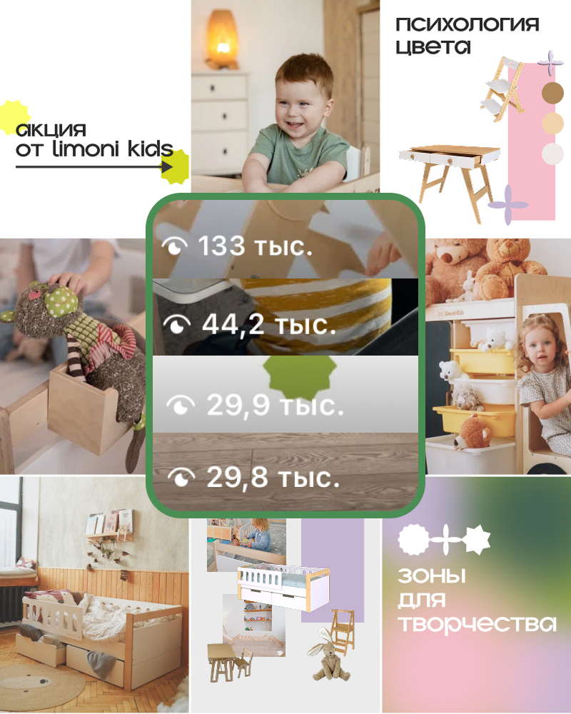 Задача: привлечь новых покупателей через социальные сети, повысить узнаваемость бренда и сделать так, чтобы о мебели Limoni-Kids заговорили не только родители, но и педагоги, развивая популярность методики Монтессори.