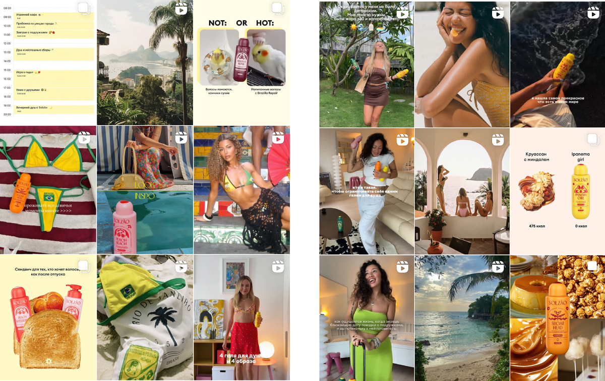 За счет этого контент не ощущался однотонным. Каждая героиня — как будто отражение разных граней бразильского лета. Это и есть разнообразие, которое делает бренд живым: когда в ленте не просто продукт, а мир, в который хочется попасть.