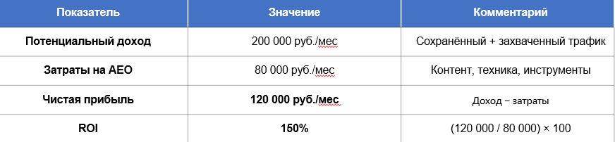 Инвестиции в AEO защищают ваш трафик от постепенного сокращения.