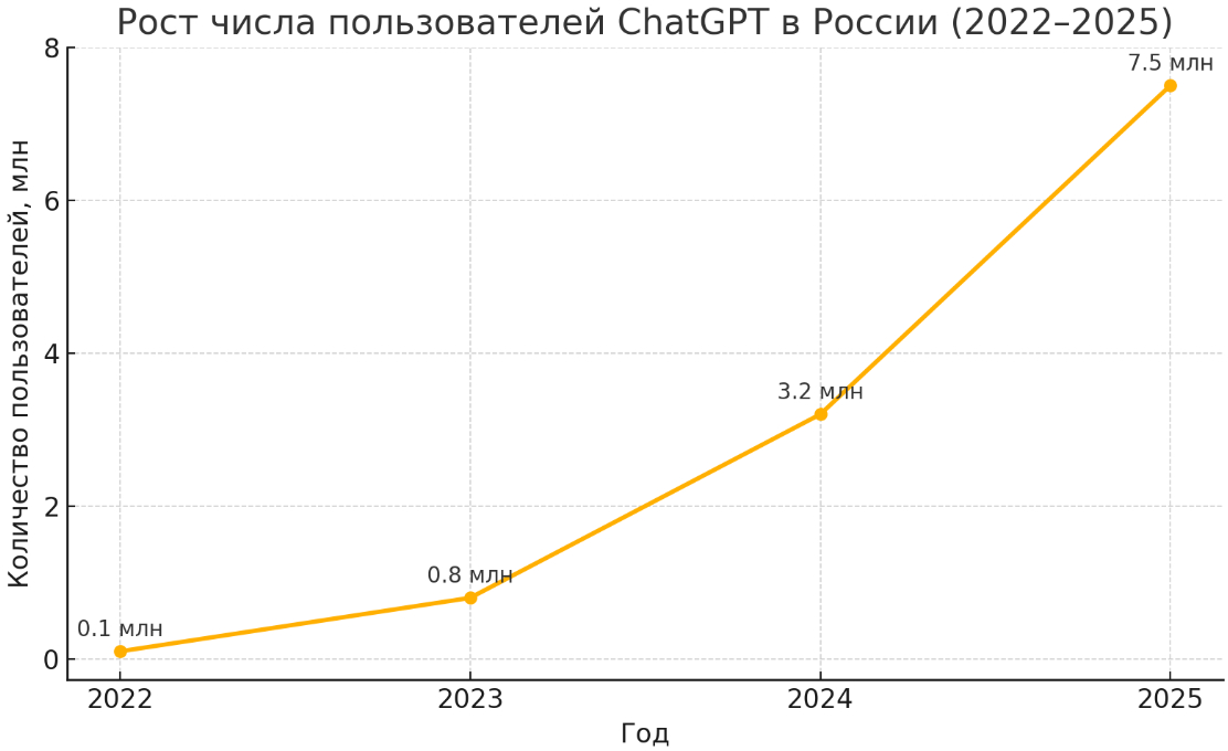Или график роста числа пользователей у chatgpt, за последние полгода это число удвоилось