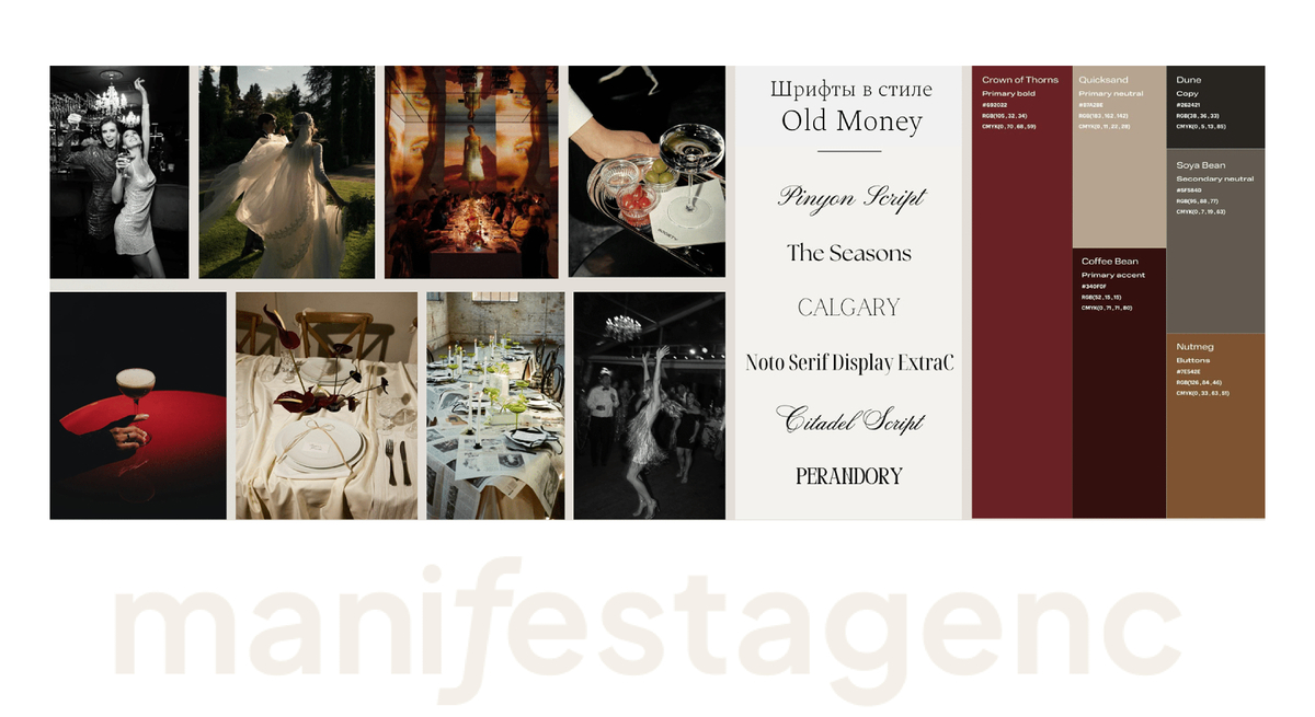 Сначала мы переделали брендбук: перед тем, как найти нужный фирменный стиль, мы сделали более 10 вариантов оформления аккаунта (спойлер: и выбрали самый продающий). Сначала мы хотели нагрузить визуал деталями и сделать его темным: акценты на мелкие элементы декора, типа люстр и еды на столах, создавая «глубокий» и насыщенный стиль. Это ведь логично — хочется подчеркнуть роскошь и люкс. Но чем дальше мы шли, тем яснее становилось: такой подход перегружает восприятие.