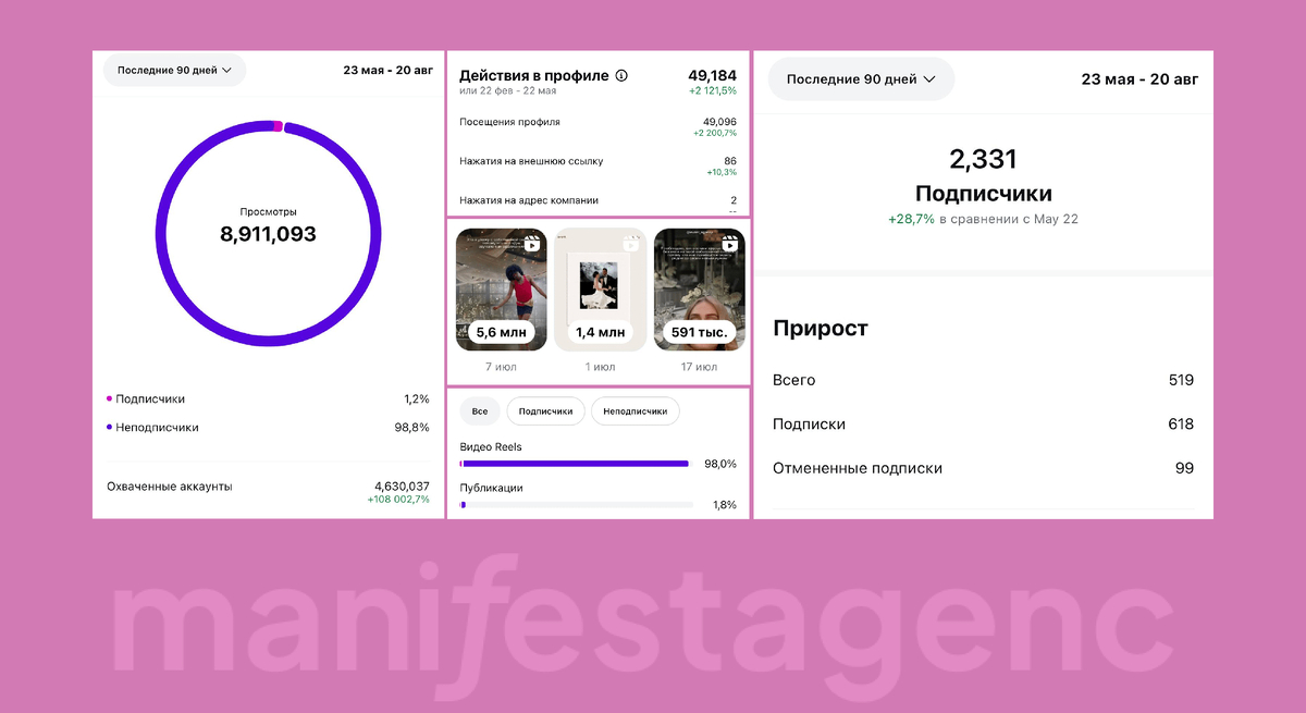 Что стояло за результатами? Всё дело в нашей авторской методологии, где гипотезы превращаются в стратегии, а стратегии — в реальные результаты. Этот подход помогает нам не просто увеличивать охваты, но и создавать стабильный контент, который приводит к долгосрочным и масштабируемым результатам.