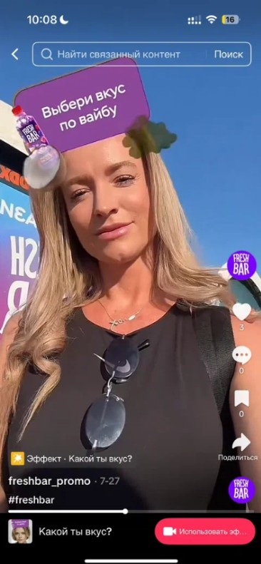 Параллельно была запущена креативная AR-маска, которая в игровой форме позволяет определить, какой вкус Fresh Bar подходит пользователю «по вайбу», а также призывает аудиторию делиться результатами в соцсетях. Понятная и простая механика (наклони голову 4 раза к левому и правому плечу — и алгоритм выдаст тебе твой вкус) позволяет ненавязчиво знакомить пользователей с новыми и уже полюбившимися вкусами бренда: Melonade Mojito, Merry Berry, Cola Lemon, Cola Dragon Fruit, Magic Skills, Cola Original[1] — и получать на выходе креативные UGC.