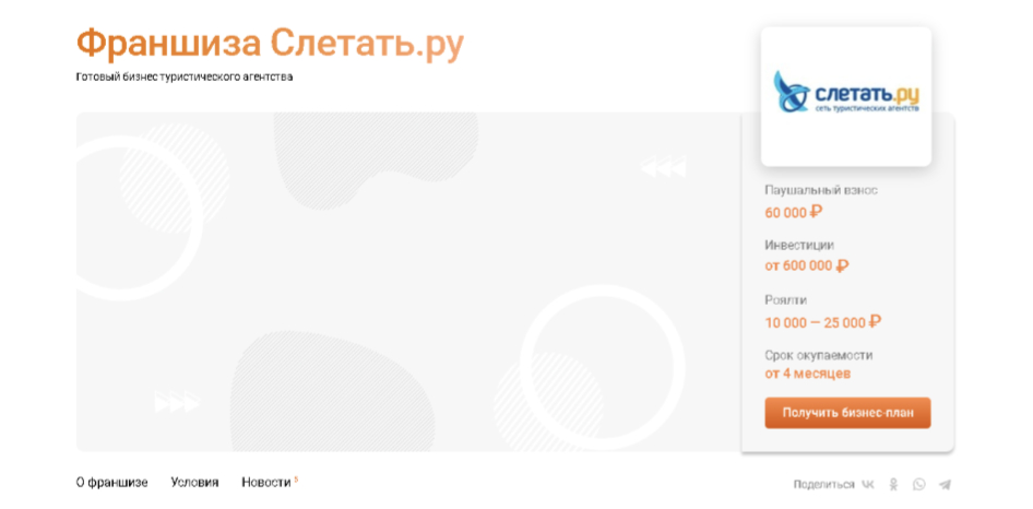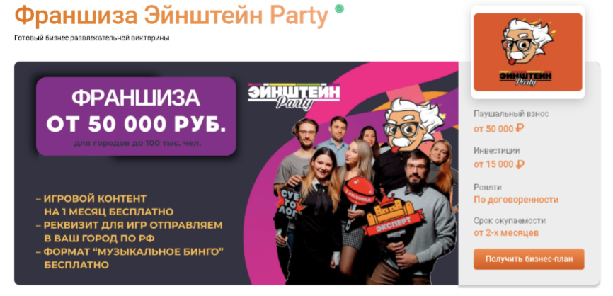 Одна из самых дешевых франшиз. Быстрый запуск, высокая маржинальность и формат мероприятий.