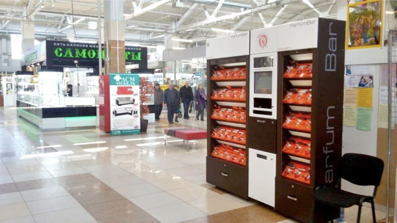 Островки с парфюмерией на разлив в торговых центрах.