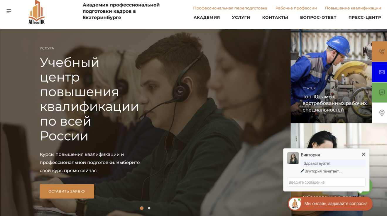 АПрофПК — это современный образовательный центр, предлагающий более 3000 программпрофпереподготовки, повышения квалификации и рабочих специальностей. Клиент работает по всей России и помогает не только частным студентам, но и компаниям оформлять лицензии, допуски СРО и сертификаты.