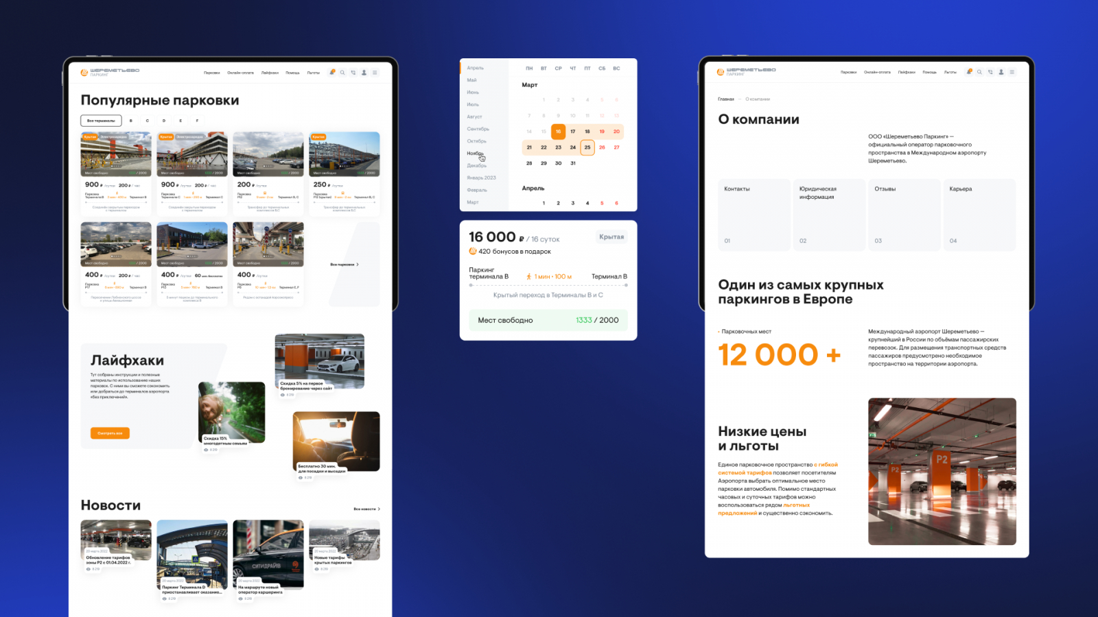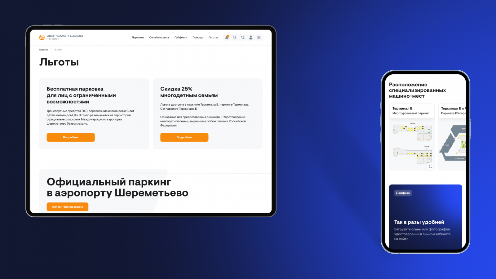 Клиенты заходят на сайт Шереметьево Паркинг, чтобы быстро забронировать парковку или зайти в личный кабинет. Им нужен понятный сервис — а не сложные анимации и лишние акценты. Этого подхода и придерживались при создании Шереметьево Паркинг.