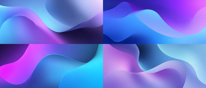 Abstract gradient background, smooth color transitions, modern minimal design, web banner, blue and purple tones, soft shapes --v 7 --ar 21:9