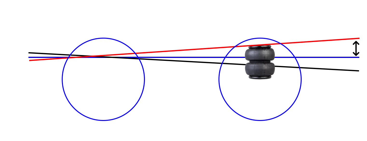 Задирать кузов во время движения над задней осью не имеет никакого смысла ни на пустом авто, ни на груженом. Увеличение расстояния между задней осью и кузовом путем чрезмерного повышения давления в системе влечет за собой передачу на кузов и на груз всех неровностей дороги. Что делает поездку совершенно некомфортной, а вибрация и удары, передаваемые на раму способны повредить штатные элементы авто. Повреждение штатных элементов авто возможно и при неправильном подборе пневматических элементов. Обычно такое бывает, когда пневматическая подушка имеет рабочий ход и максимальную высоту больше, чем штатная подвеска автомобиля. К примеру 220е или 250е пневмоподушки совершенно не подходят для большинства малотоннажных автомобилей именно из-за особенностей конструкции штатной подвески.