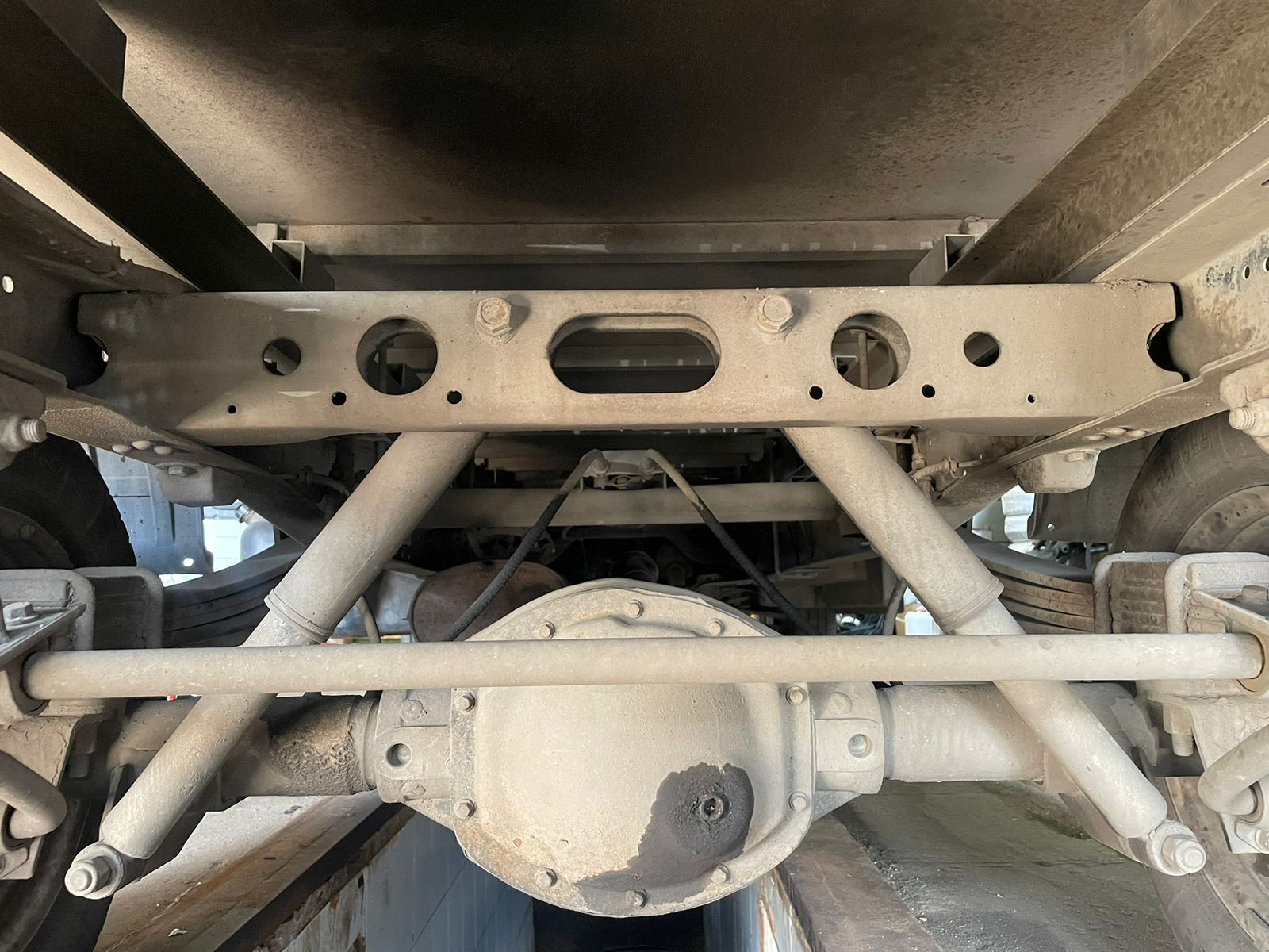 Автомобиль Газель Некст с круглым мостом и амортизаторами, расположенными поперек рамы «домиком». По расположению сразу понятно, что подойдет только комплект на обычных подушках.