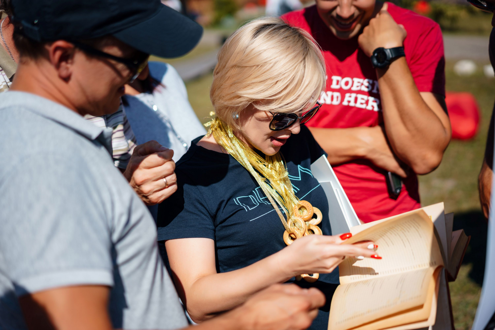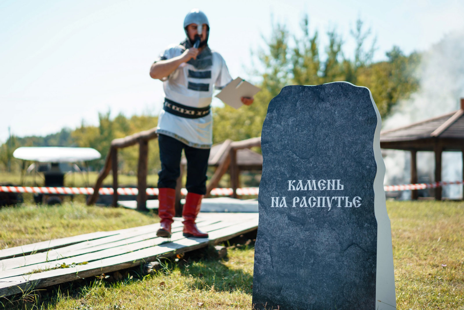Мы использовали классический сюжетный ход — камень на распутье с выбором пути: прямо — славу обретешь, налево — молодость найдешь, направо — тайну разгадаешь. Команды проходили три маршрута, собирая артефакты: яблоко молодости, перо Жар-птицы и аленький цветочек.