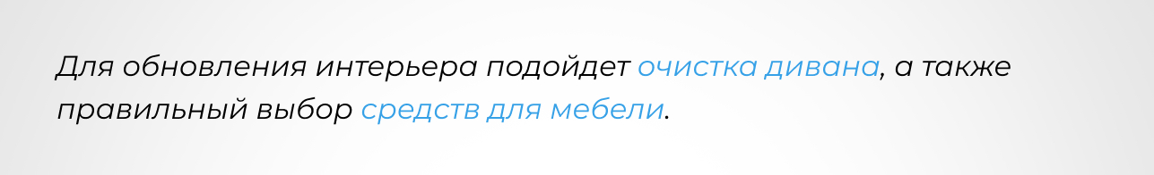 Используются и LSI-варианты — то есть синонимы и смежные выражения вроде «средства для мебели» или «очистка дивана».