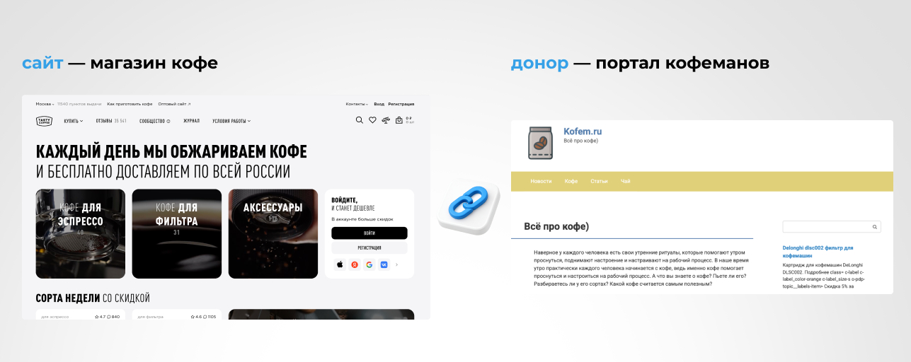 Именно поэтому качество донора — ключевой момент. Ссылку нужно размещать на ресурсе, который либо работает в той же тематике, либо логично пересекается с вашей. Например, если вы продвигаете интернет-магазин кофе — отлично подойдут сайты о кофемашинах, барах, оборудовании для кафе. Если у вас магазин детских товаров — ищите форумы мам, сайты про родительство, детское развитие.