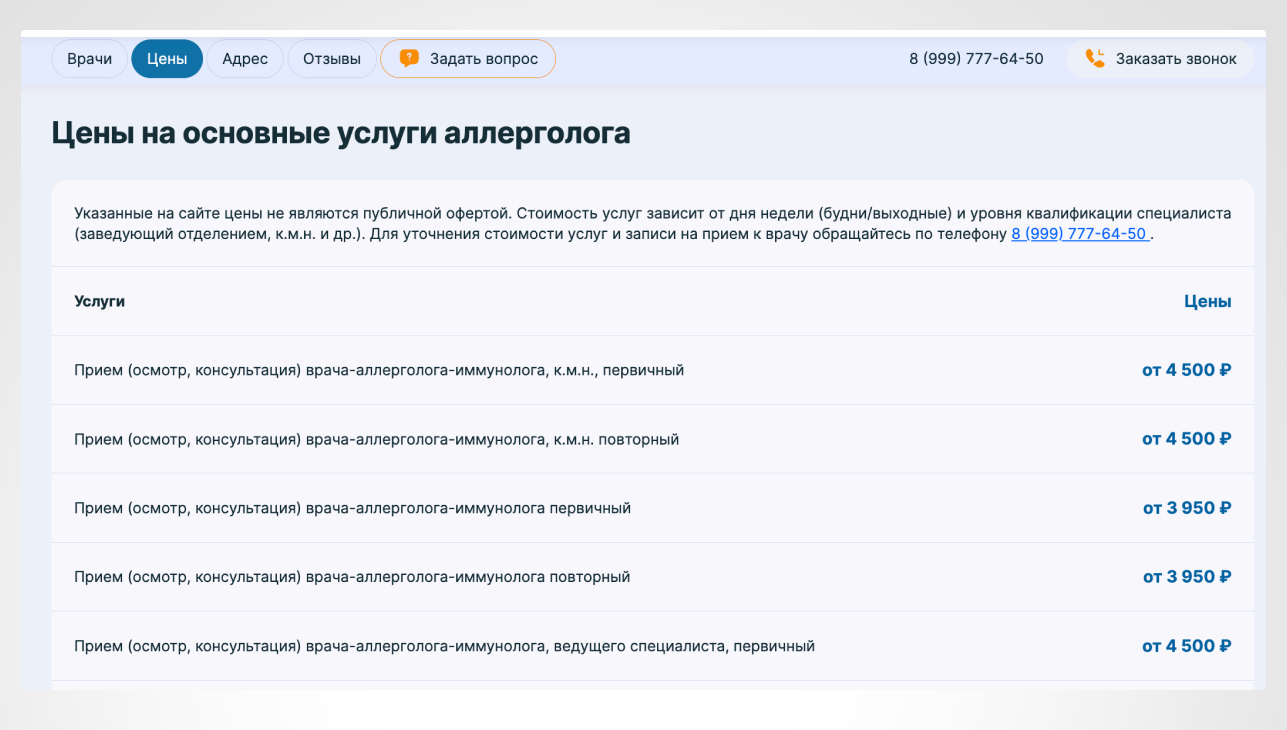 Мы обновили прайс-листы, уточнив стоимость услуг и добавив подробные описания. Разметка прайсов с использованием структурированных данных улучшила видимость в поисковых системах.