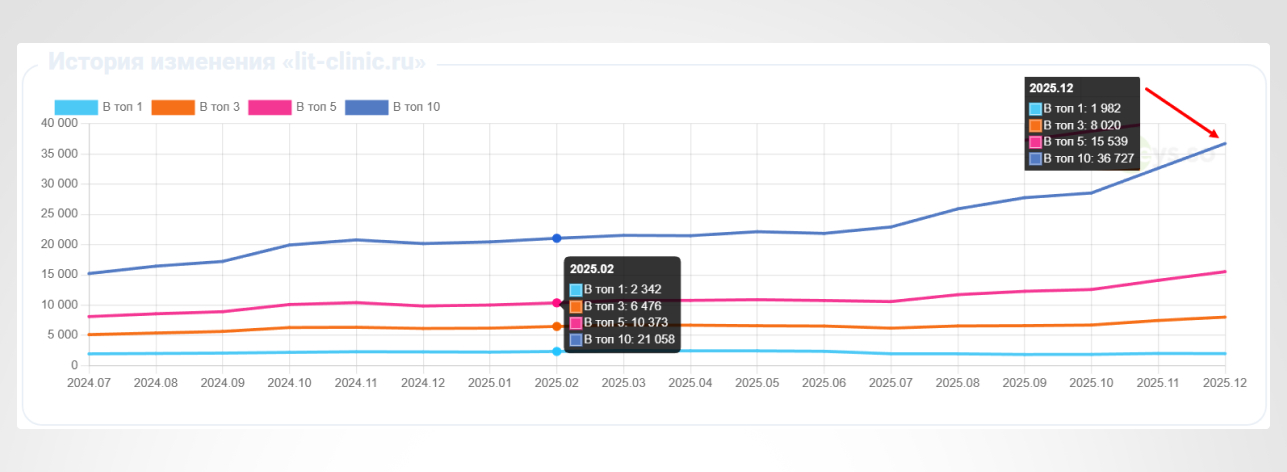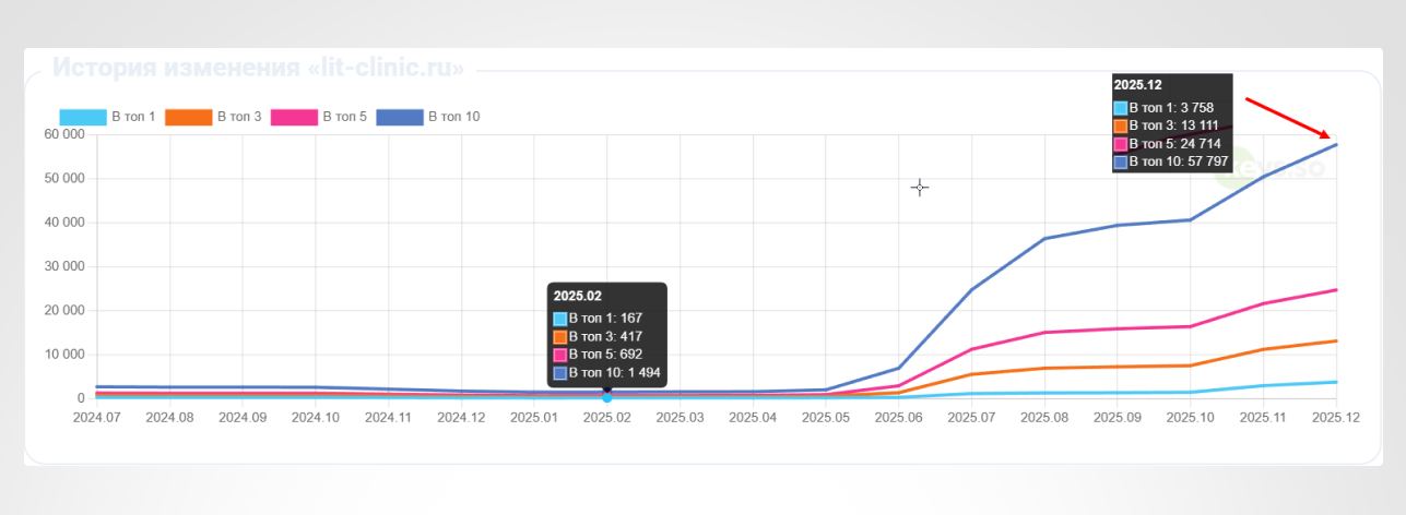 В результате SEO-продвижения сайт клиники превратился из вспомогательного ресурса в полноценный канал привлечения пациентов из поиска.