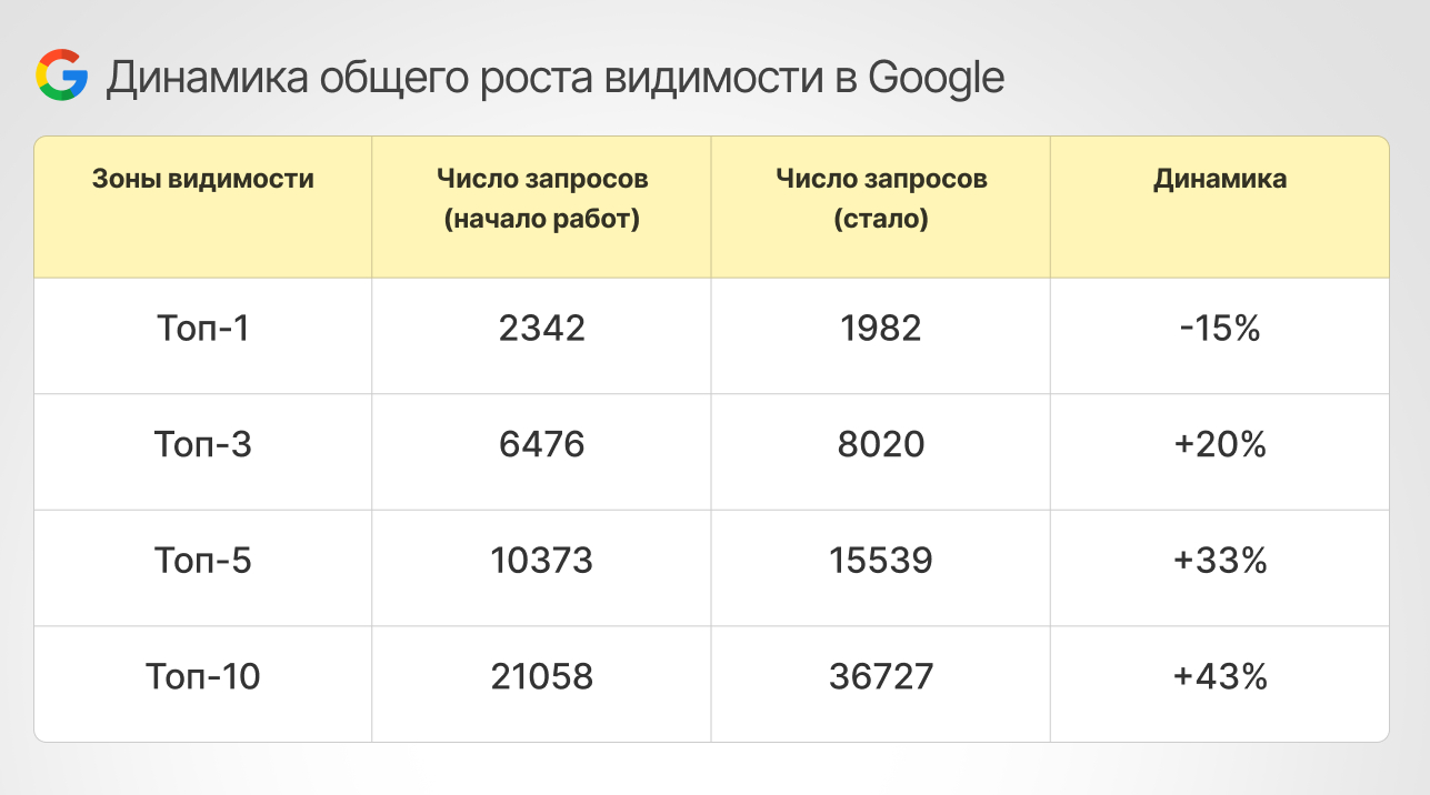 Google +43% к видимости в ТОП-10