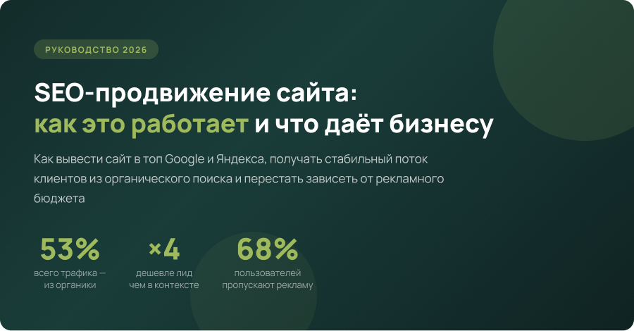 Средняя стоимость клика в Яндекс.Директе и Google Ads выросла на 25–40% за последние два года. В конкурентных нишах один клик — 500–3 000 ₽. SEO позволяет получать тот же трафик без оплаты за клик.