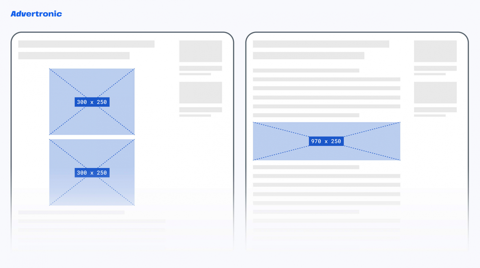 Advertronic, сервис-партнёр по монетизации, сравнил две схемы размещения инвентаря в одном рекламном месте: один крупный формат против нескольких небольших одновременно. Рассматривались типовые плейсменты: сайдбар, врезки в контенте, хедер; как для desktop, так и для mobile; вертикальные и горизонтальные форматы.