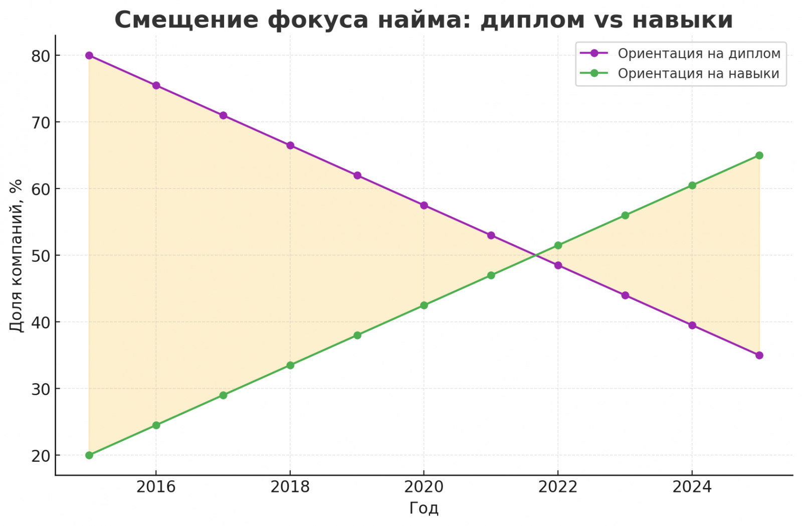 (ИИ, программирование, digital), выгоднее смотреть на навыки и потенциал. Там,